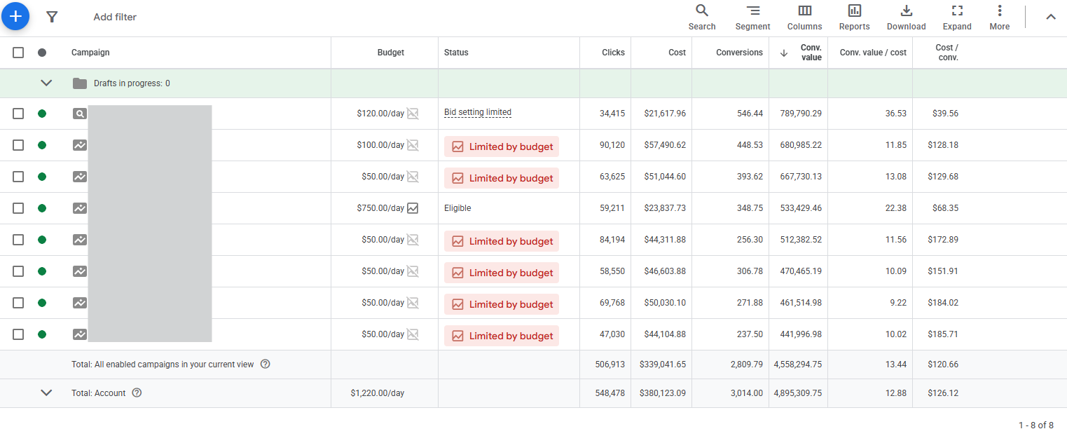 - ROAS (Conv. value / cost): 12.88x